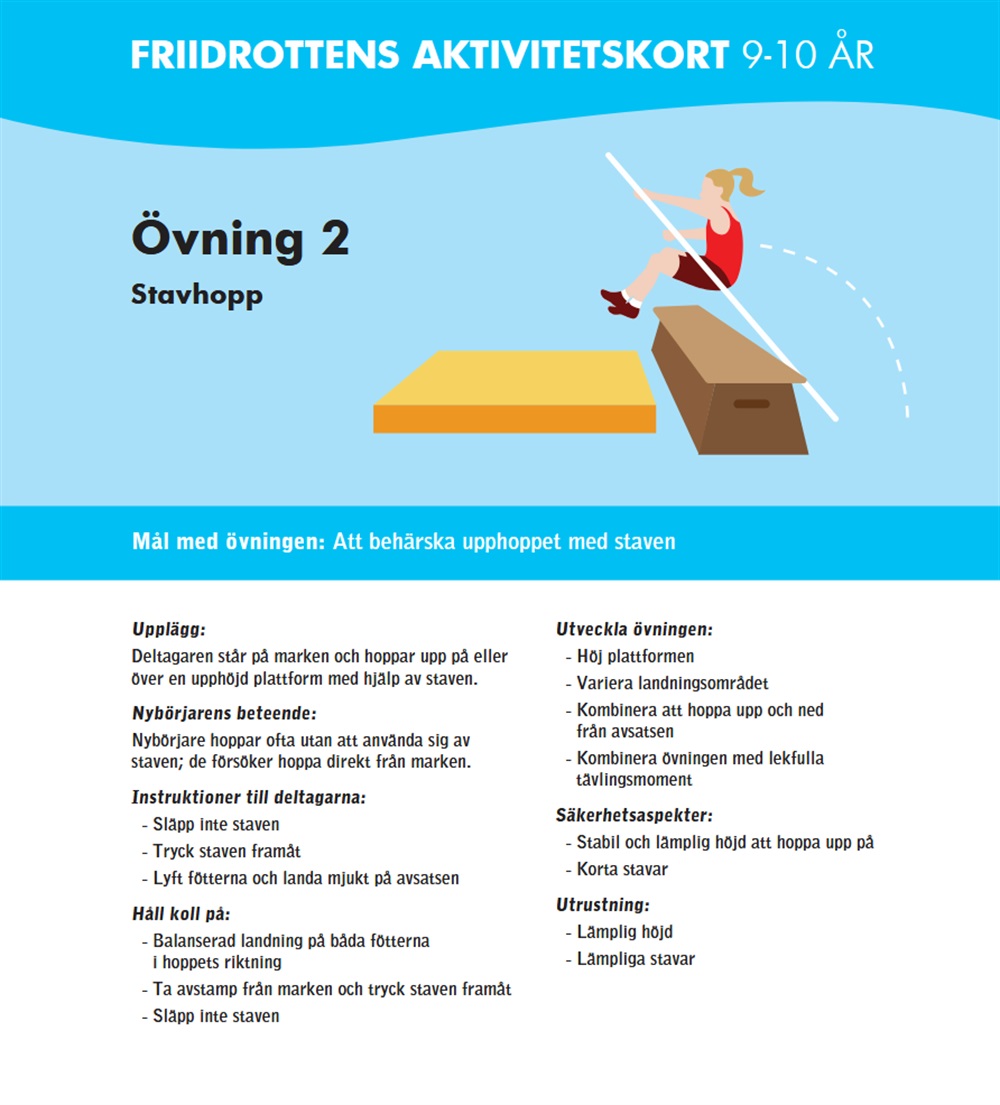 Hej! Jag har laddat upp dokument från utbildningen Barntränare i friidrott under Dokument - Tränare - Material Barntränare i friidrott. Det är framförallt de två dokumenten Friidrottens aktivitetskort som jag tror kan vara värdefulla. De innehåller tillsammans över hundra olika övningar med illustration, instruktion, saker att hålla koll på och utvecklingsförslag.